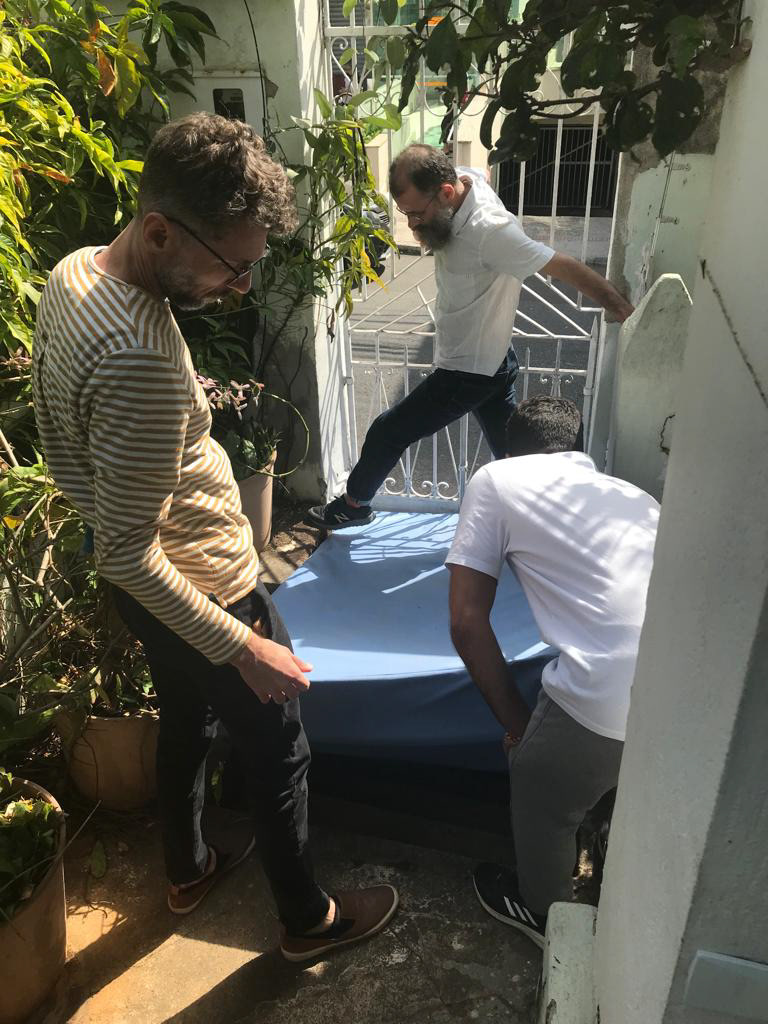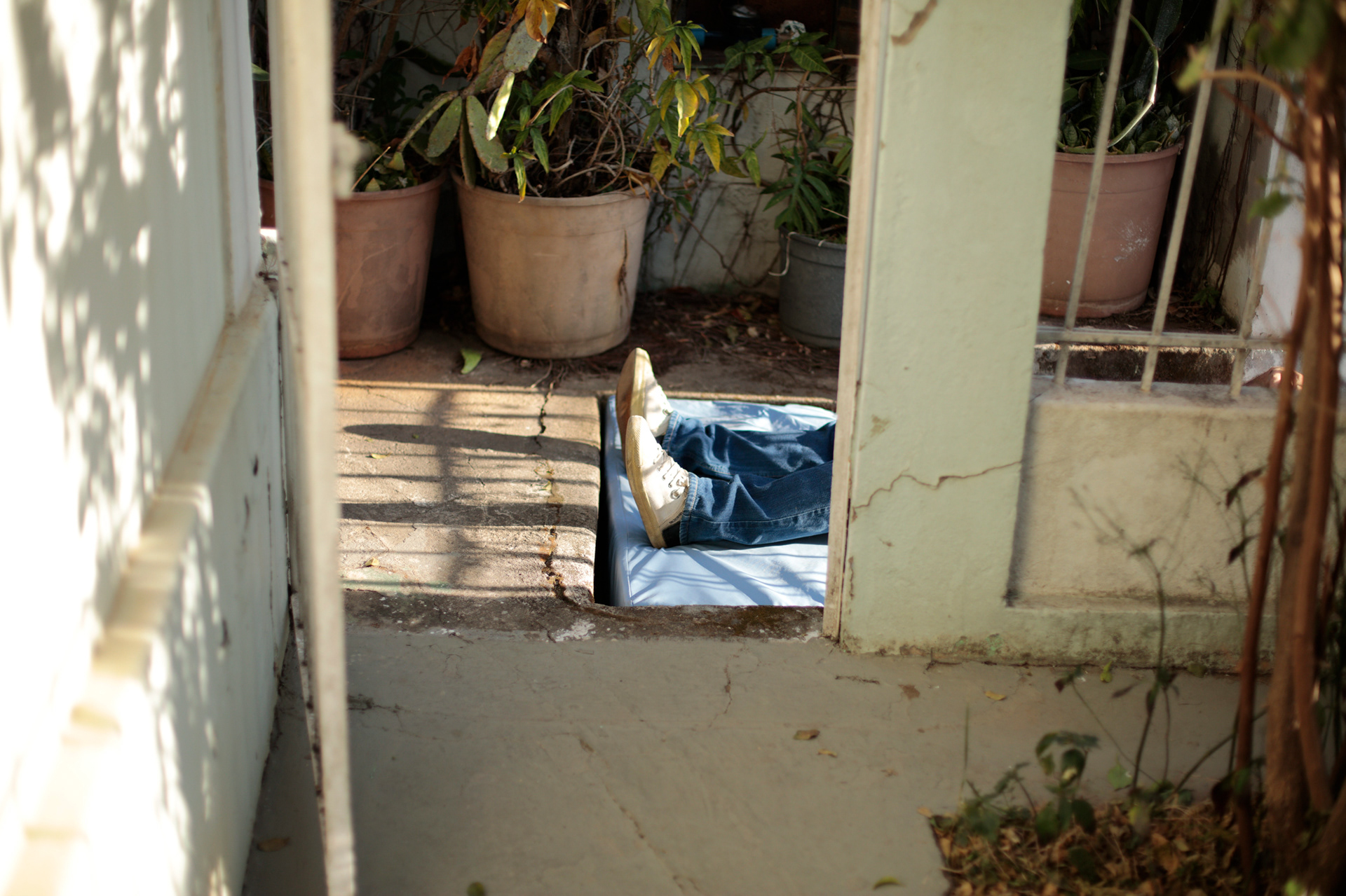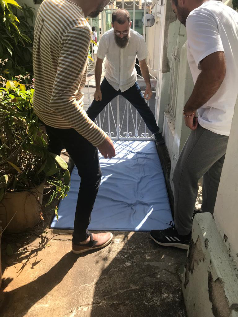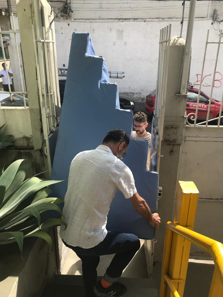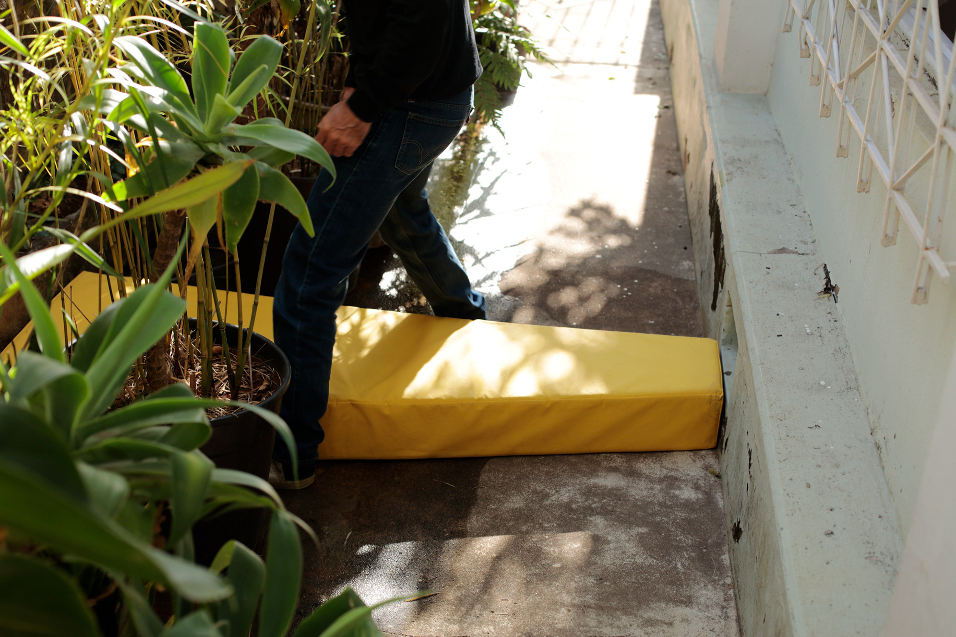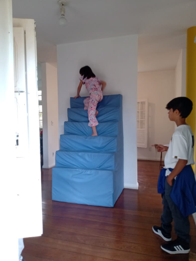 A partir de uma ação coletiva durante a abertura da exposição, a escultura I, escada, foi ainda deslocada para o interior da casa, em um desajeitado movimento da arquitetura. Uma vez fora do beco, embora continue sendo sempre uma impressão dele, ela assume outra forma à medida em que é rotacionada e não mais se encaixa, instituindo relações diferentes com os demais espaços onde se encontra.